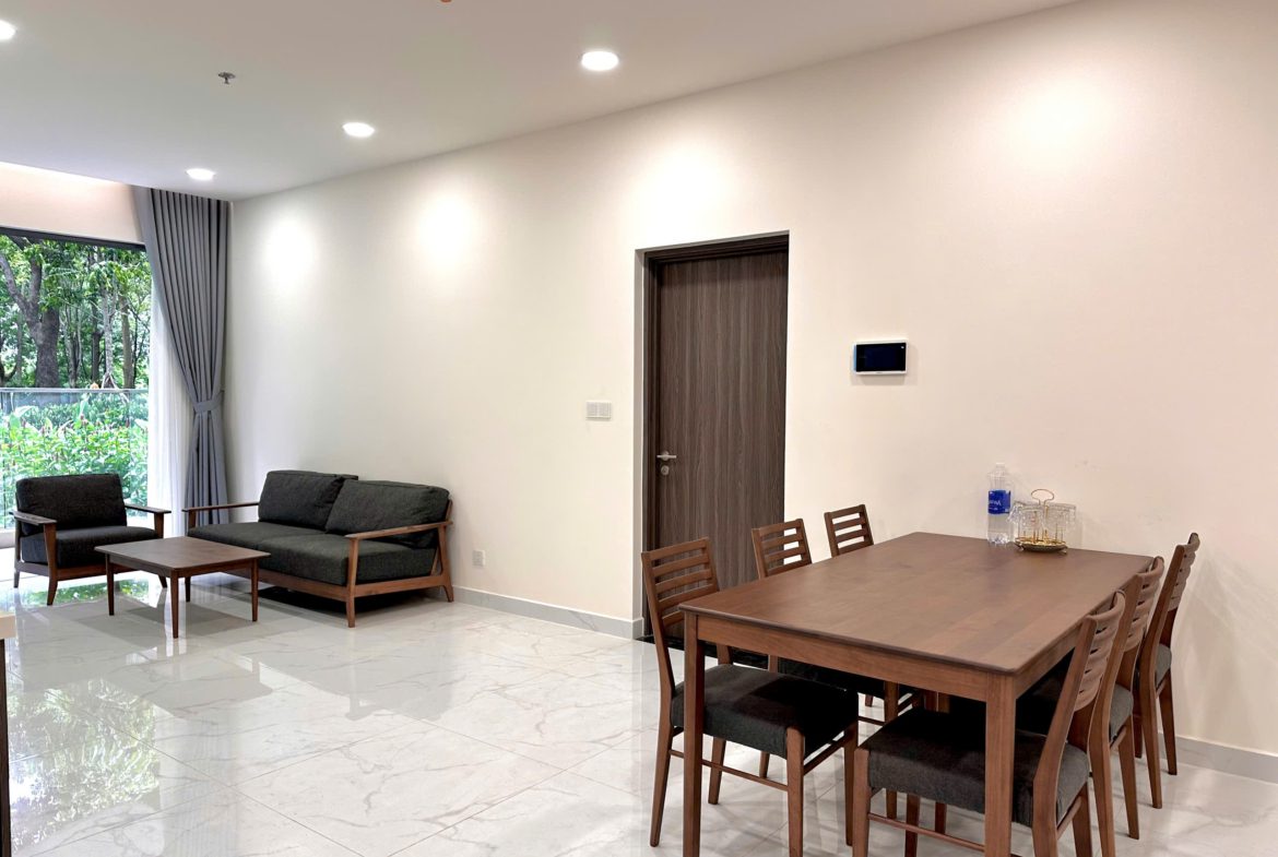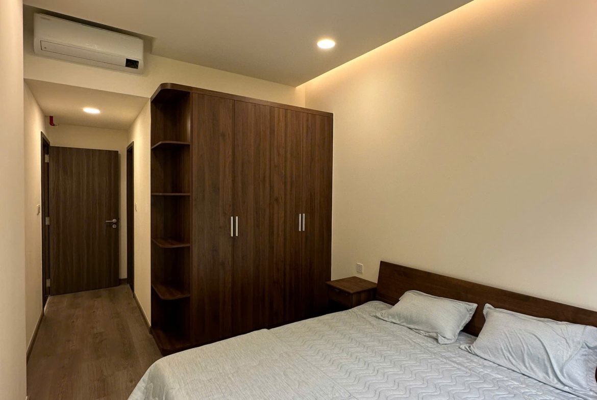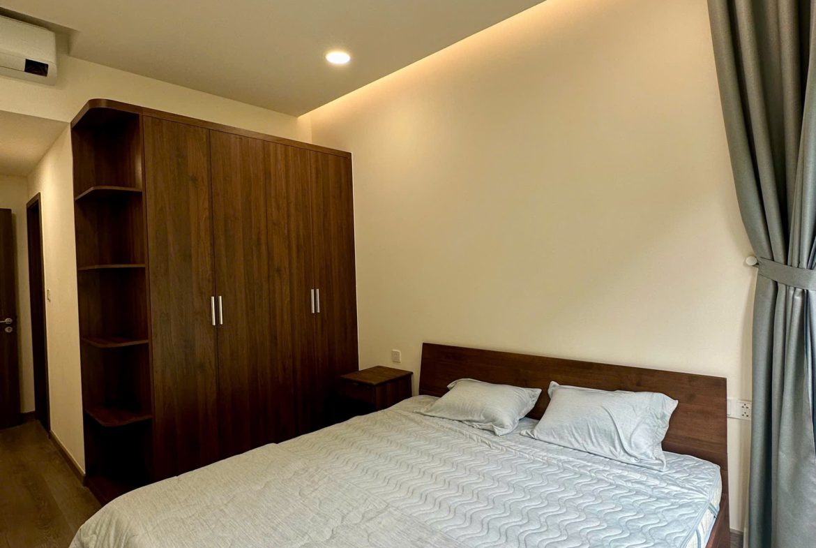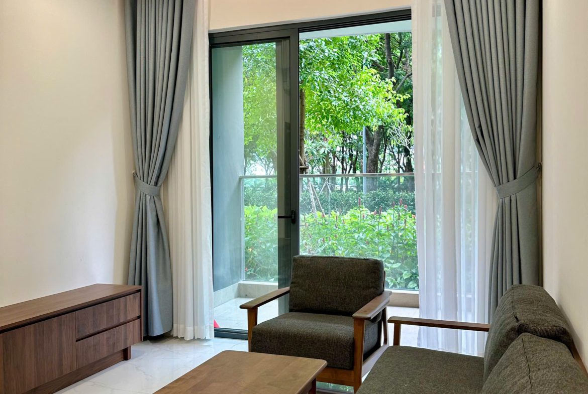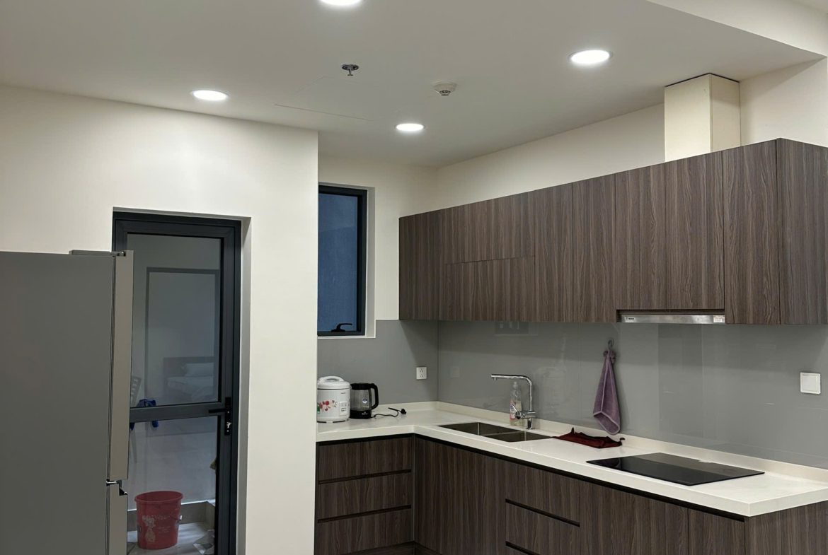 Căn hộ đã được trang bị đầy đủ nội thất: Sofa, bàn trà, bàn ăn, giường ngủ, tủ quần áo, tủ bếp, bếp điện từ, điều hòa, máy nước nóng, tủ giày, rèm cửa, giàn phơi đồ, máy giặt, tivi, kệ tivi, tủ giày…